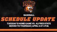 ROCHESTER, N.Y. – Tomorrow's home game against Alfred State has been rescheduled and will now be played on Thursday (Apr. 9) at 4 p.m.
