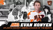 ROCHESTER, N.Y. - RIT Men's Hockey first-year forward Evan Konyen was named Atlantic Hockey America (AHA) Rookie of the Month, Wednesday.