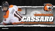 ROCHESTER, N.Y. - RIT fifth-year defenseman Gianfranco Cassaro was named the Atlantic Hockey Defensive Player of the Week, Monday, winning his third award of the season.